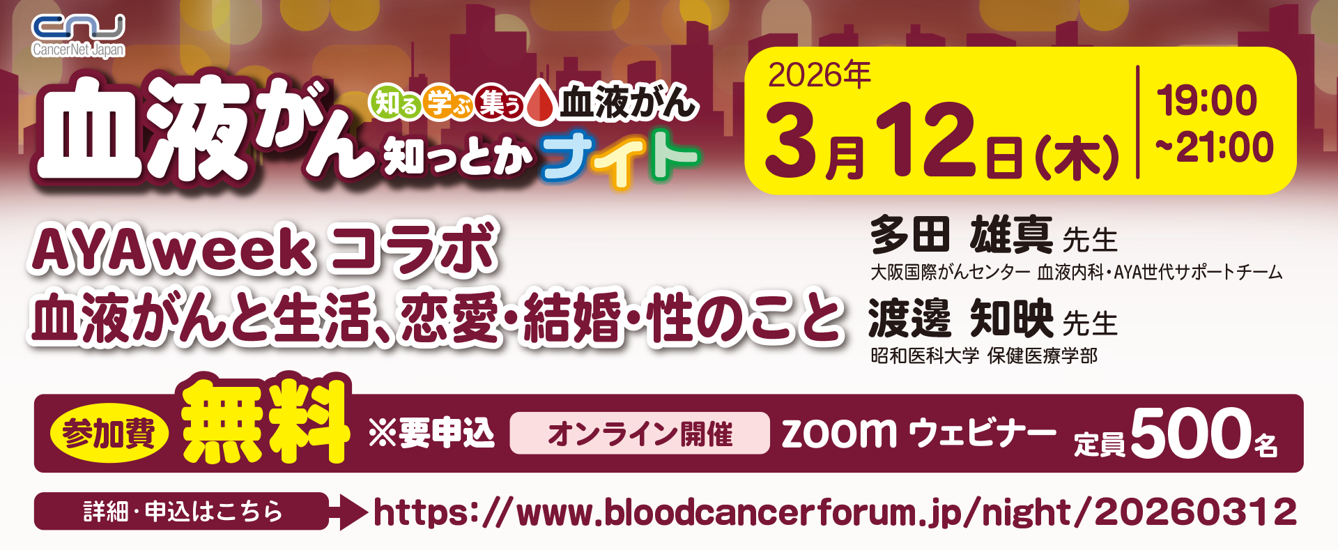 【第25回】血液がん知っとかナイト AYAweek コラボ企画「血液がんと生活、恋愛・結婚・性のこと」